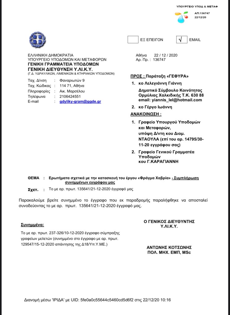Συνέχεια ανάγνωσης «6ος Λαϊκός Αγώνας Δρόμου «Αντώνης Παπαδημητρίου»»Τον Οκτώβρη του 2020, αποστείλαμε ένα έγγραφο με βασικά ερωτήματα, προς τον αρμόδιο Υπουργό Υποδομών και Μεταφορών, σχετικά με το Φράγμα του Χαβρία, τα οποία απαντήθηκαν και δημοσιεύω σήμερα.